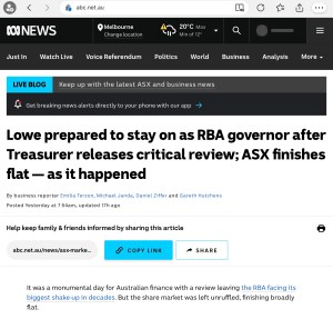 The third key recommendation of setting up a Head of Communications thus becomes clear. The messaging from the RBA justifying policy settings will become part of the political messaging. Communication will be harder, messier etc.
