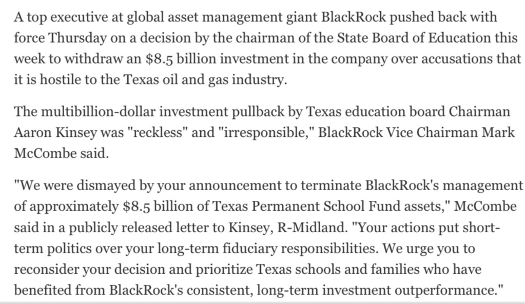 Blackrock’s response was swift. As reported in the Austin-American Statesman: