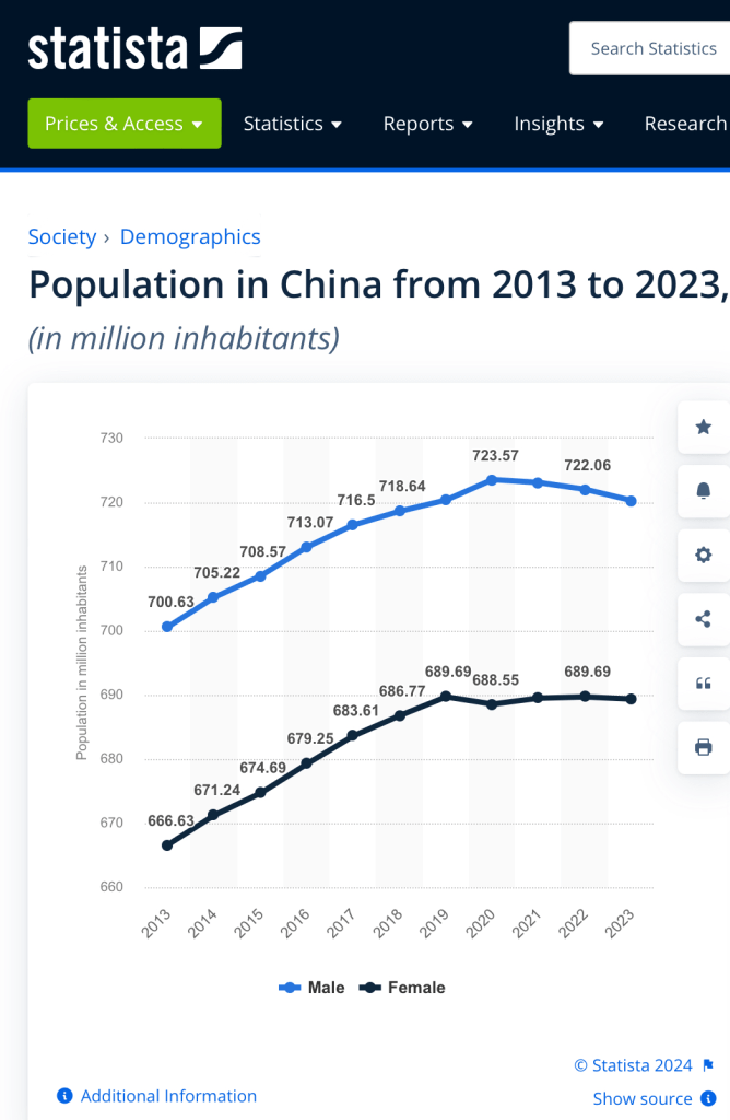 What is going on in China right now? There are two obvious and insurmountable problems that China has. They are, by nature, insoluble. The first is the central control of the economy by the ruling political class, the communists. The second is demography.