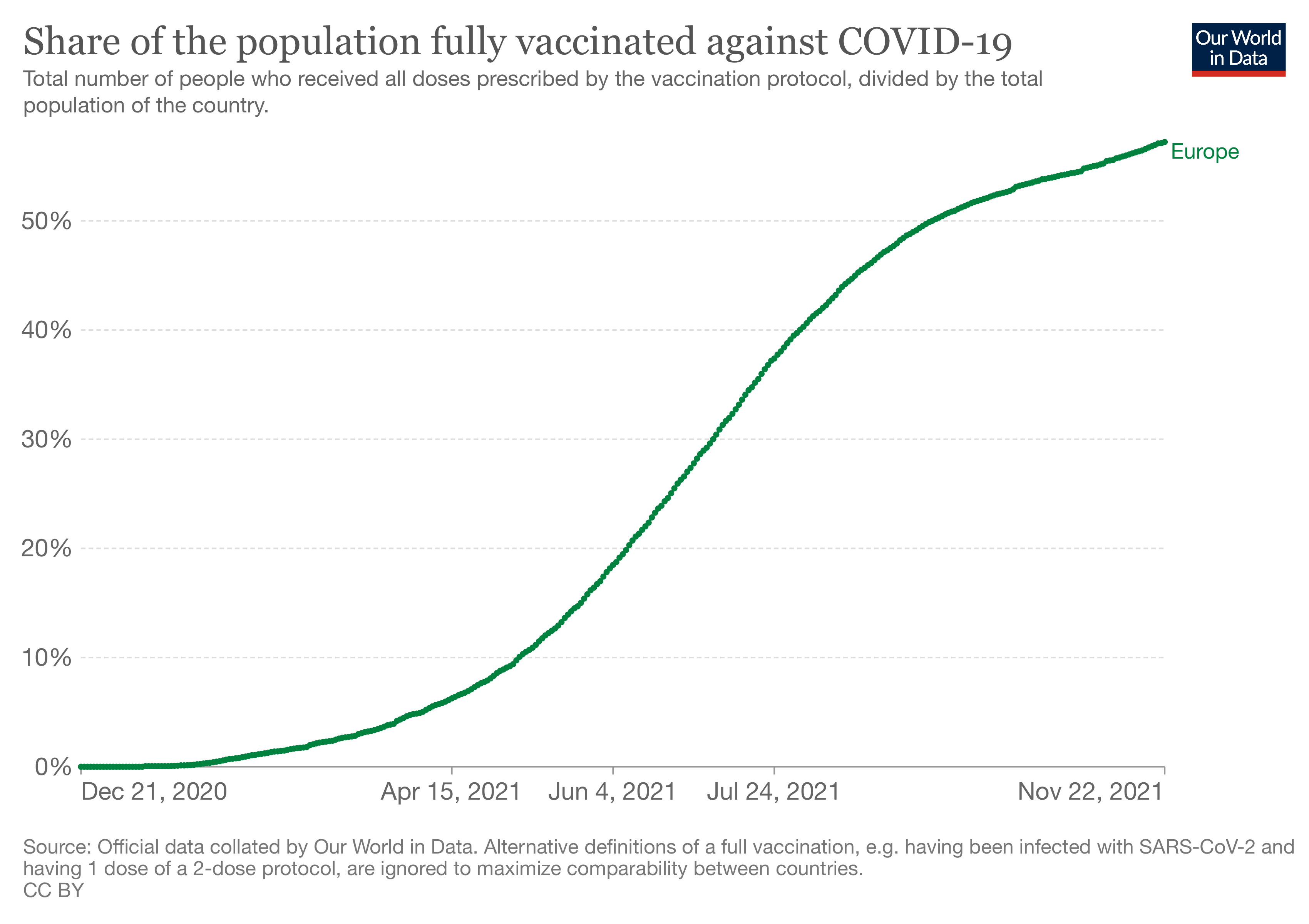 Israel did remarkably well to get above 50% over 6 months ago. Canada lagged but its vaccine roll out was then rapid. The UK and US are broadly similar. From this chart, the narrative would have you believe that the number of new COVID cases this year should have been highest in Canada, lowest in Israel with the UK and US in between. (Ignore Australia – there is insufficient data yet and it being a closed island creates a mismatch in comparisons to other countries; but I’ll leave the data as a sidenote.)